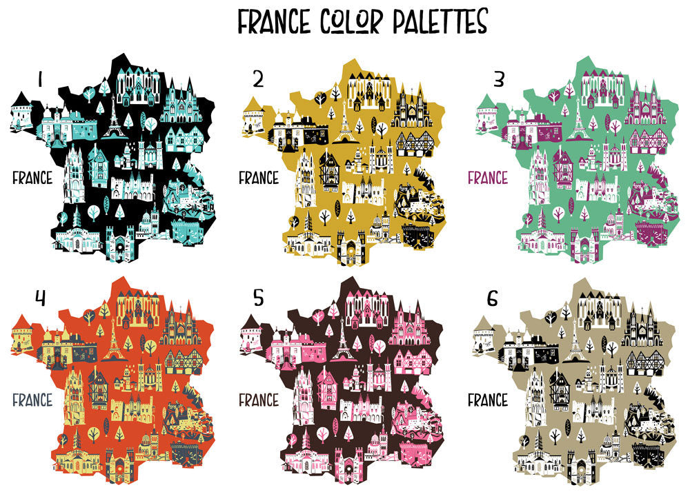 France print in six color options and two design options. If you prefer the landmark list instead of the map just let me know that along with your color choice in the comments section when checking out.