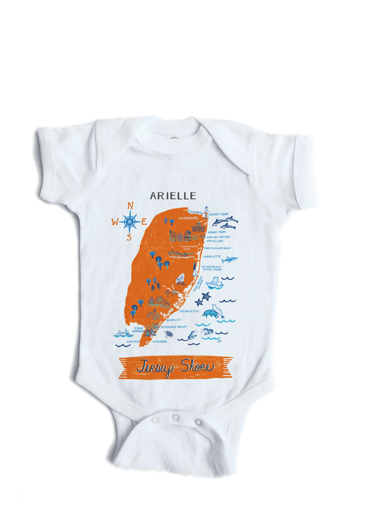 Infant bodysuit with Jersey Shore on it. If you'd like a name or saying added under the design, just choose that option and leave me a note when ordering.