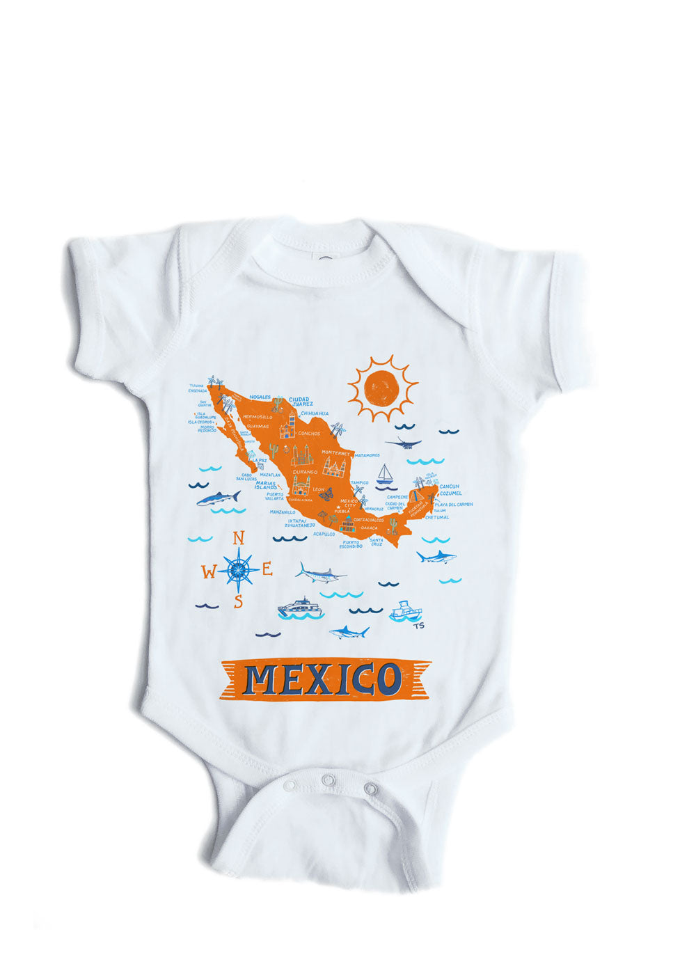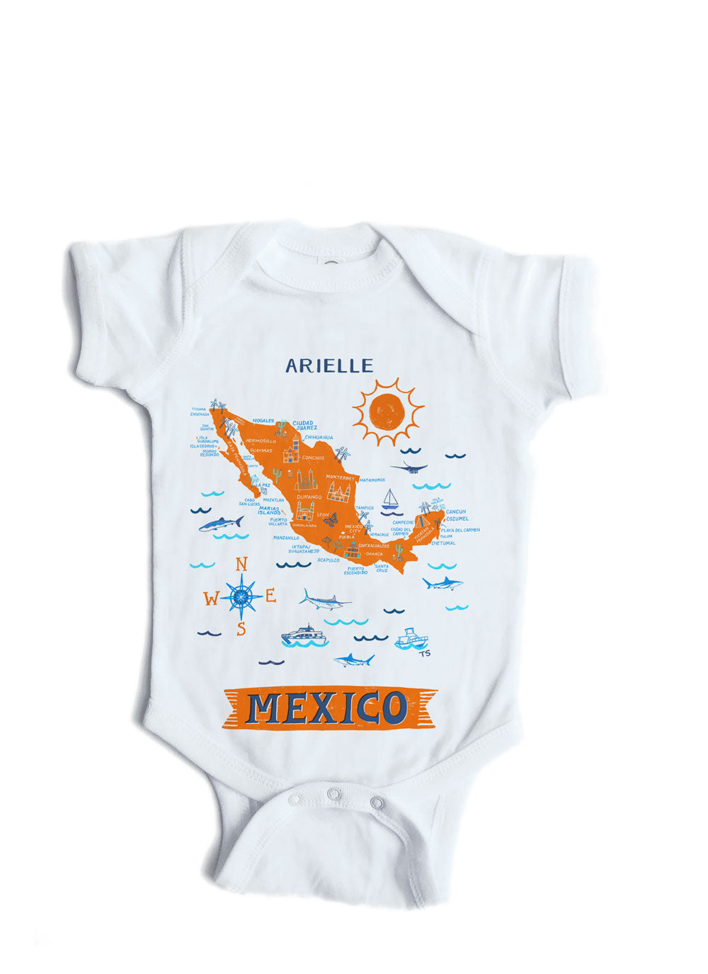 Infant bodysuit with Mexico on it. If you'd like a name or saying added under the design, just choose that option and leave me a note when ordering.