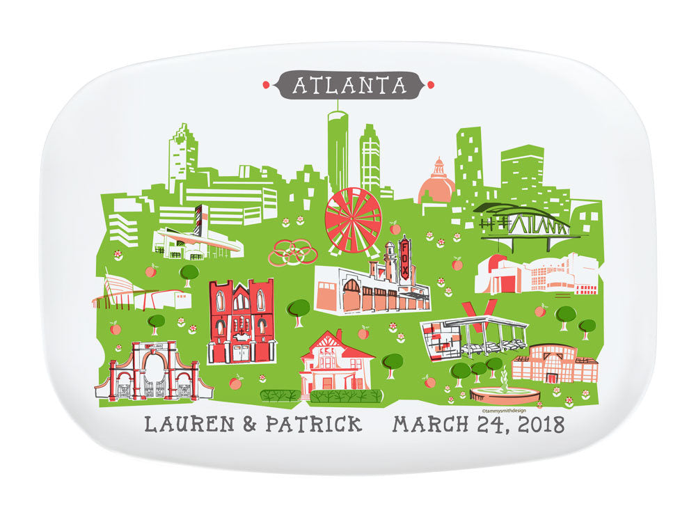 Atlanta Platter-City Platter-Melamine Tray-City Serving Platter-Green-Peach-Grey-Personalized-Custom-Any City Platter